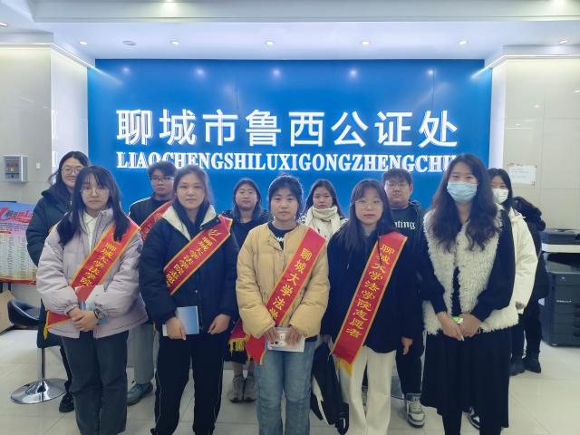 12月4日,tyc41183太阳成集团志愿者走进聊城市鲁西公证处举办以“宣传宪法,公证同行”为主题的活动,tyc41183太阳成集团2022级、2023级部分学生参加此次活动。