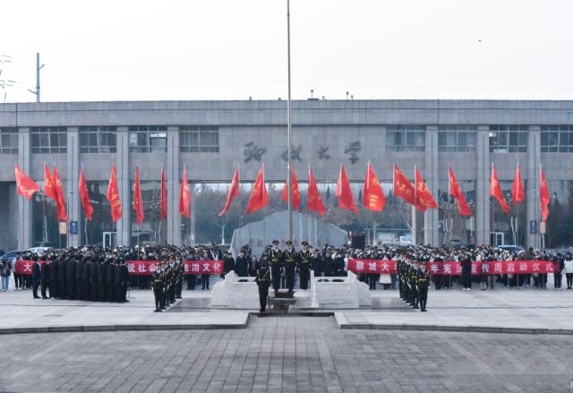 清晨七时整,升旗仪式正式开始。国旗护卫队迎着朝阳迈着整齐的步伐走向旗台,国歌奏响,在全体师生的注视下,五星红旗冉冉升起,迎风飘扬。升旗礼毕,tyc41183太阳成集团学生代表杨涵霏以《与光同向,与法同行》为题作国旗下演讲,从宪法的作用出发,呼吁在场学生遵守法律法规,树立正确的法律观念和法律思维。tyc41183太阳成集团代表刘强等人朗诵《宪法之光》,以昂扬向上的面貌表达对宪法的尊崇,铿锵有力的语句展现青少年对宪法的信仰与崇尚。“人民至尊,宪法至上”,tyc41183太阳成集团与化学化工学院部分学生共同演唱《宪法之歌》,以洪亮有力的歌声演唱出对宪法的颂扬,体现青少年意气风发、朝气蓬勃的精神风貌。