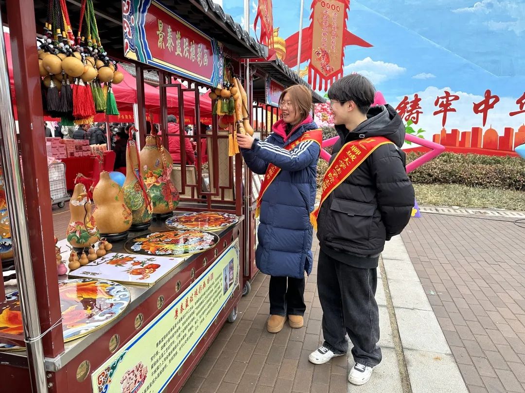 此次活动围绕欣赏空竹表演、体验糖人制作、参观年画展览等环节展开,领悟艺术魅力,喜迎龙腾春节。活动过程中,志愿者探访空竹表演艺术家,欣赏人竹合一的抖空竹表演,切身体验抖空竹,感受中华传统非物质文化遗产的魅力。在糖人制作板块,糖人制作者简要介绍“制作糖浆、抽拉糖浆、挤管糖浆、雕刻、上色”等制作糖人的过程,点明制作过程中的注意事项,随后,志愿者根据指导顺利完成糖人的制作,进一步感受传统手工的技艺和雅趣,增强志愿者对糖人非物质文化遗产的认同和文化自信。在参观年画环节中,志愿者在年画手艺人的带领下参观年画、临摹年画,并共同写福字赠予附近居民,增添浓浓年味,年画手艺人表示年画是一部地域文化的辞典,从中可以找到地域鲜明的文化个性,期望更多青年人热爱、传承年画手艺,为乡村振兴贡献青春力量。
