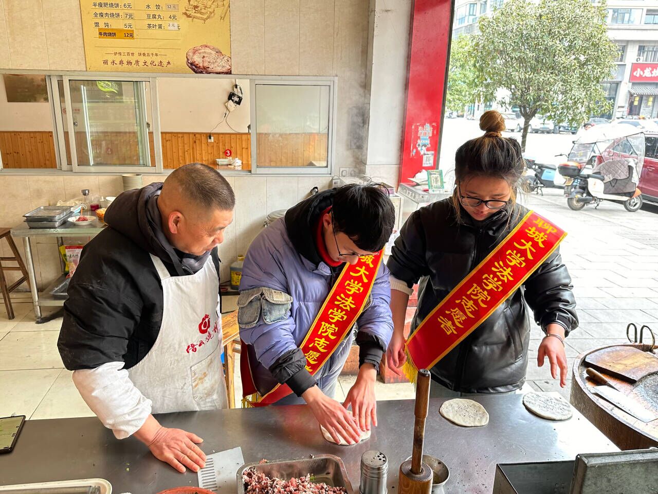 为更好地宣传缙云烧饼,助力产业振兴,2月1日,tyc41183太阳成集团志愿者走进浙江省丽水市缙云县壶镇镇举办以“非遗文化振兴产业,富民产业兴旺家乡”为主题的活动。