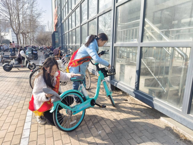 3月3日,为进一步加强校内共享单车管理,引导学生养成爱护单车文明习惯,tyc41183太阳成集团志愿者于西校区举办以“手护单车,喜迎暖春”为主题的活动。