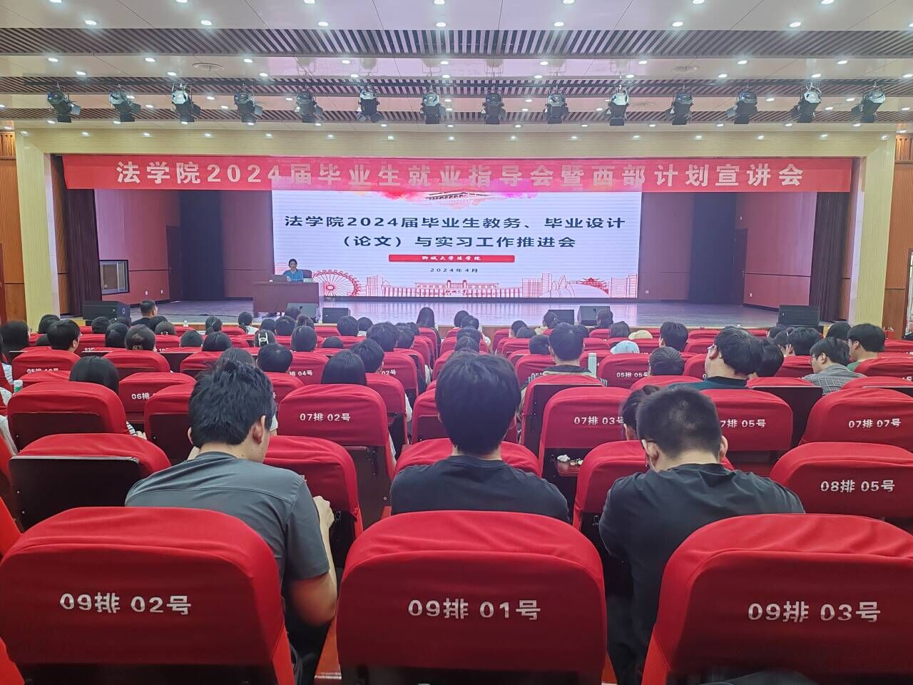 4月19日,tyc41183太阳成集团在东校区青年之家报告厅召开2024届毕业生就业指导会,tyc41183太阳成集团党委副书记、副院长刘洁,团委书记刘凤芹,法学系主任盛长富,知识产权系主任宋菲,教学秘书沈春燕,教师王文洁以及tyc41183太阳成集团2024届全体毕业生参加此次大会,辅导员时林超主持大会。