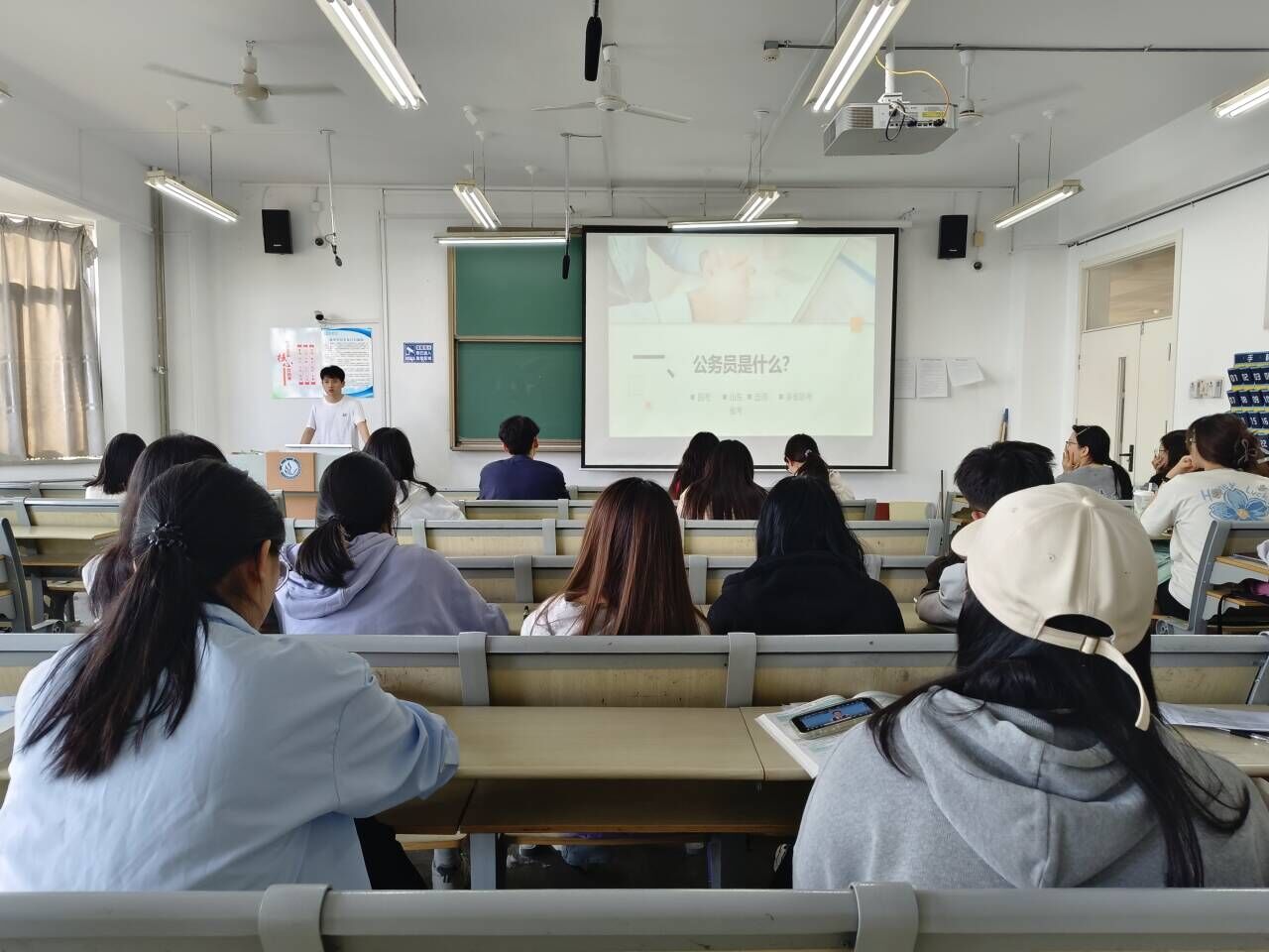 5月7日,tyc41183太阳成集团于西校区10#C520开展以“公务员招考指导”为主题的青马工程培训课程,tyc41183太阳成集团2020级学生李锋担任本次培训的主讲人,2024年tyc41183太阳成集团青马工程基础培训班全体成员参与本次培训。