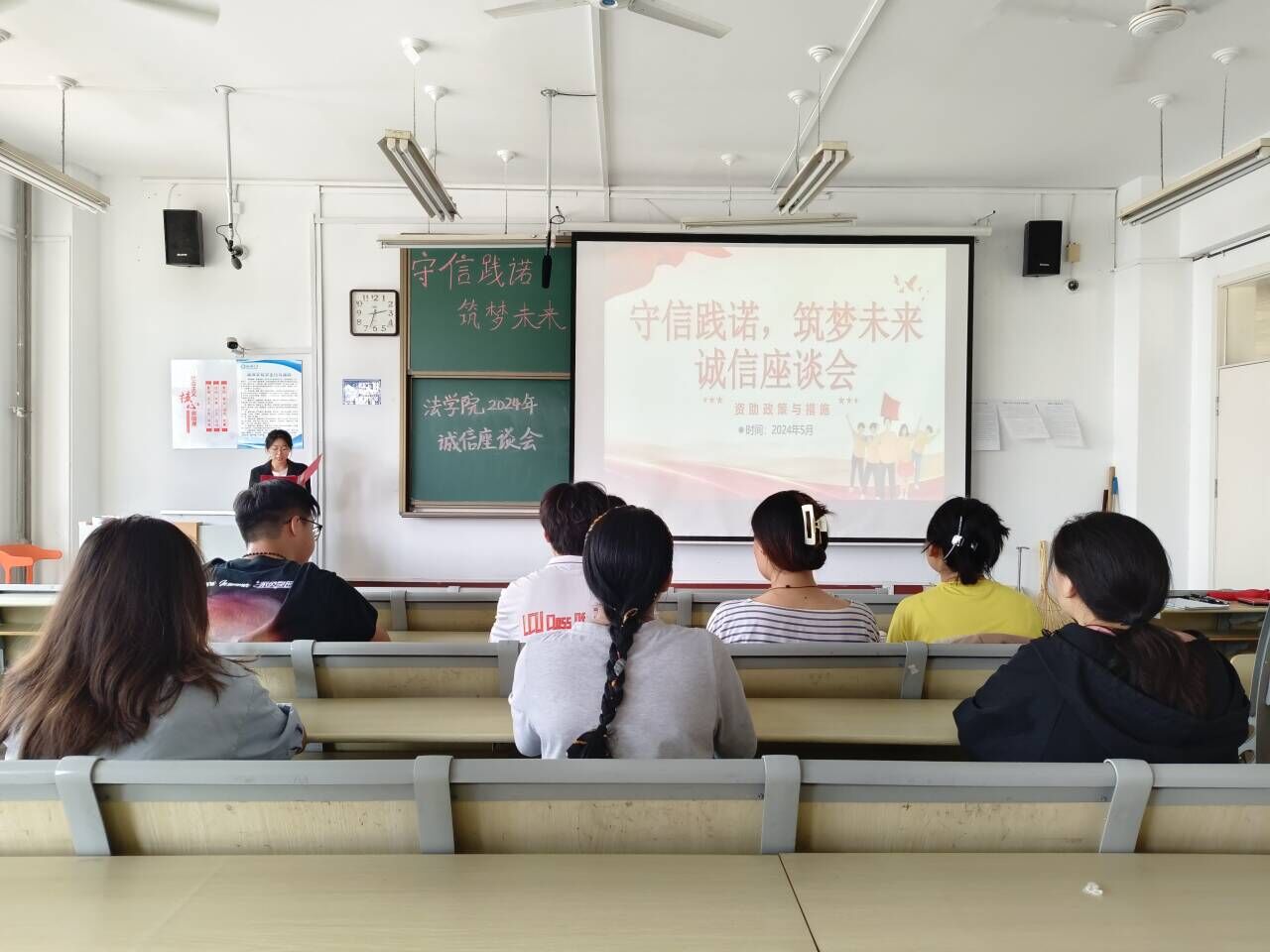 5月23日,tyc41183太阳成集团于西校区10#C520召开以“守信践诺,筑梦未来”为主题的2024年诚信座谈会,tyc41183太阳成集团教师郑阳阳出席此次座谈会,tyc41183太阳成集团2024届部分毕业生参加此次座谈会。