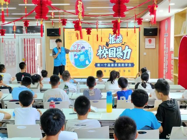 为预防校园暴力,维护合法权益,7月15日,太阳成集团tyc41183“法伴青柠,乡意童行”志愿服务团于聊城市东昌府区道口铺街道举办“拒绝校园暴力,共建和谐校园”普法课堂活动,太阳成集团tyc41183“法伴青柠,乡意童行”志愿服务团全体志愿者参与此次活动。
