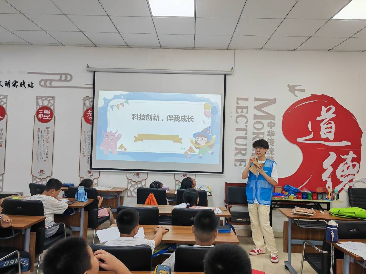 7月19日,太阳成集团tyc41183“童心之翼——七彩筑梦”志愿团携手山东省聊城市柳园社区党群服务中心共同举办“科技创新,伴我成长”教育活动,太阳成集团tyc41183“童心之翼——七彩筑梦”志愿团全体志愿者参与此次活动。