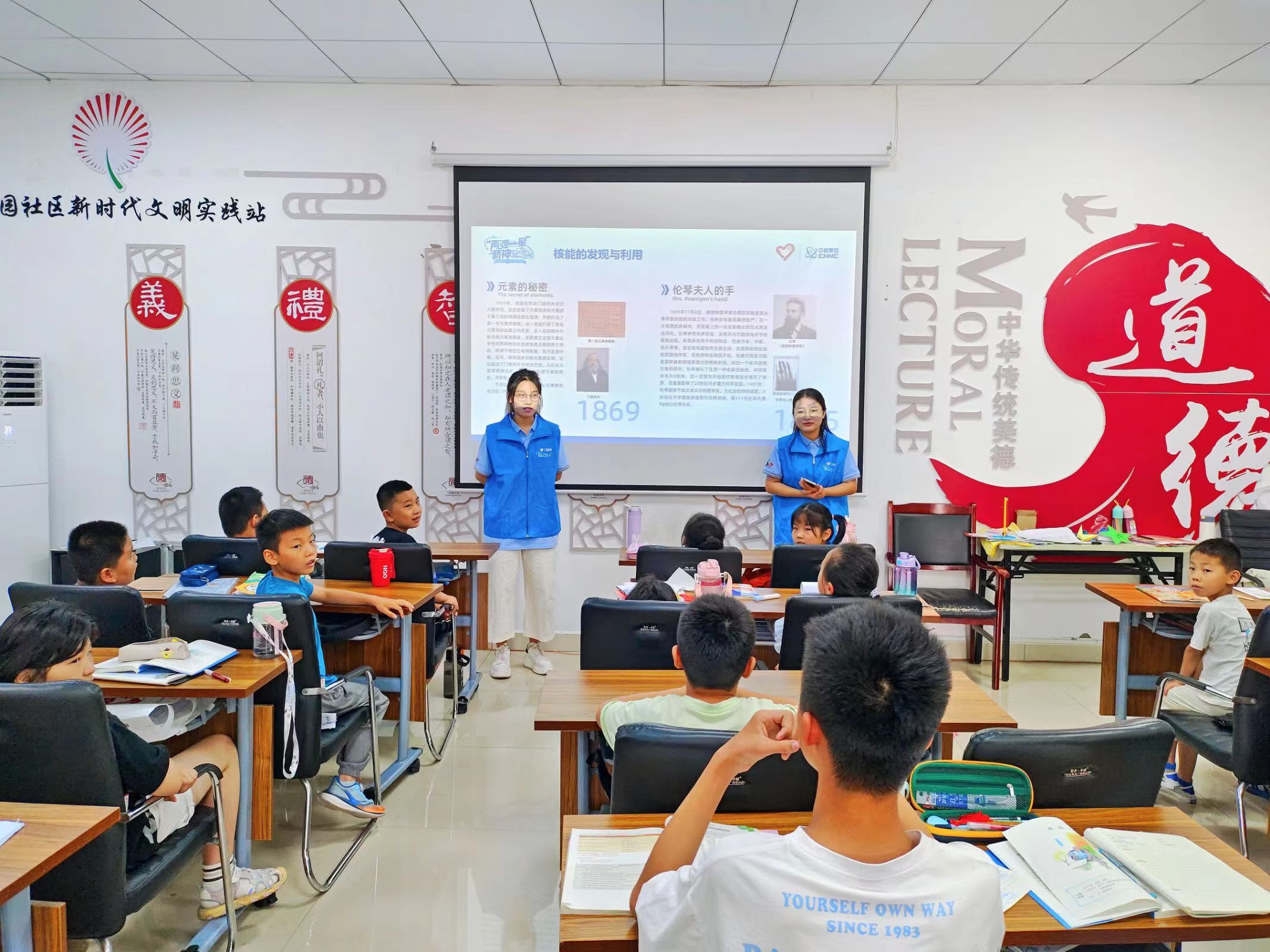 7月15日,太阳成集团tyc41183“童心之翼——七彩筑梦”志愿团前往柳园社区举办“追寻光辉足迹,传承两弹一星精神”宣讲活动,铭记“两弹一星”历史,传播“两弹一星”精神。