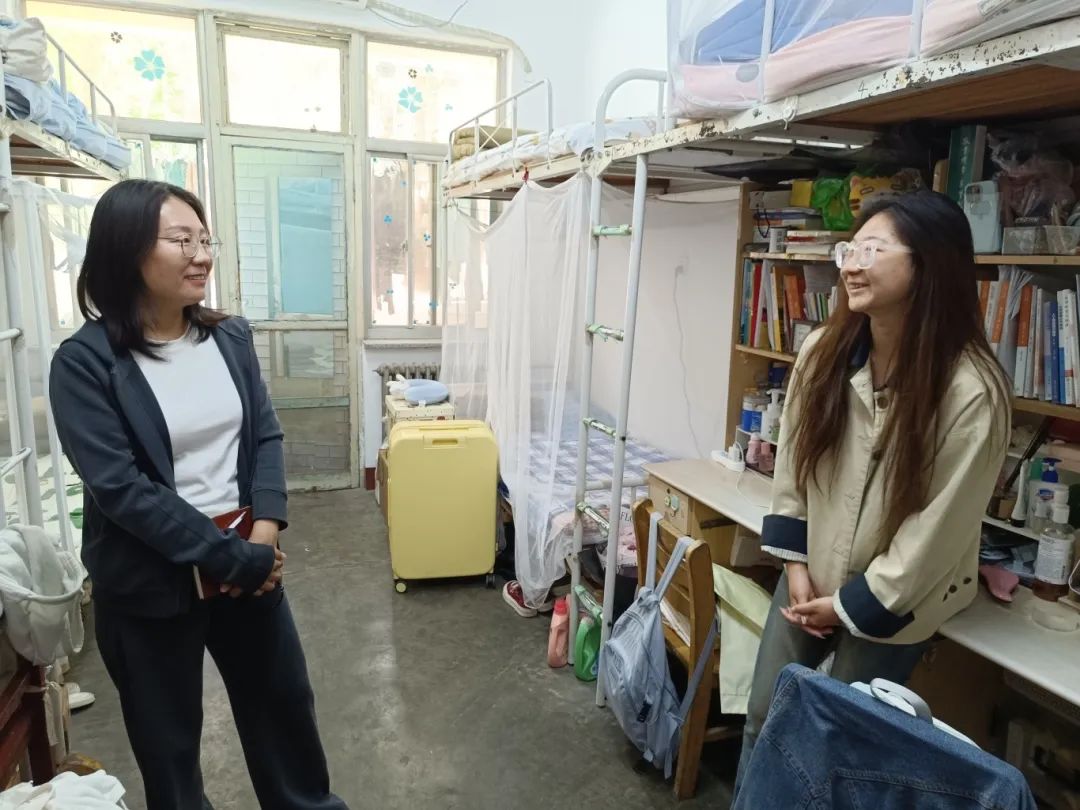 为深入了解学生思想动态和生活需求,进一步强化学风建设与宿舍安全管理,4月17日下午,tyc41183太阳成集团党委副书记、副院长刘洁带领辅导员时林超深入学生社区(宿舍),开展安全内务大检查,并为同学们送去暖心关怀与学业指导。