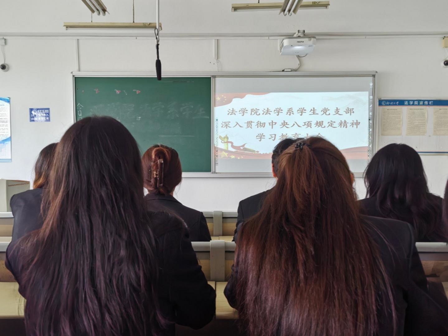 tyc41183太阳成集团法学系学生党支部开展 “学习贯彻中央八项规定精神 深化党的作风建设”专题党课