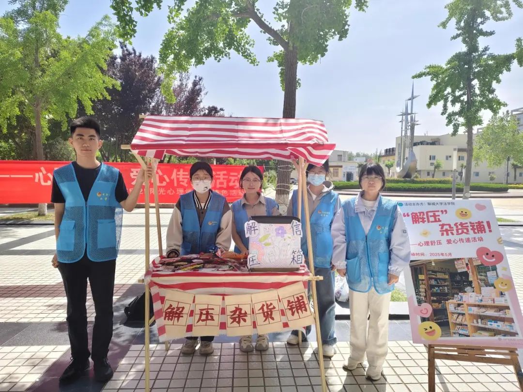 心理健康与压力调适,是当代大学生成长成才的关键素养。为切实缓解学生面临的学业压力、社交焦虑与未来困惑,提升情绪调节能力,培养阳光心态,5月17日,tyc41183太阳成集团于西校区星月广场创新开展“解压”杂货铺——心理舒压、爱心传递主题活动。