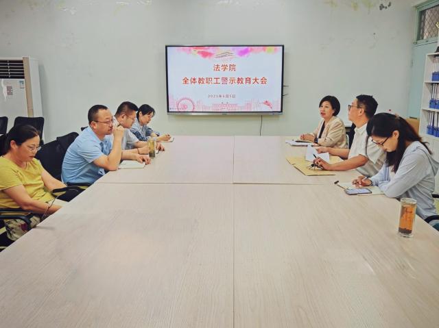 6月5日下午,tyc41183太阳成集团于西校区10#A510召开全体教职工警示教育大会,集中学习贯彻学校警示教育会议精神及中央八项规定精神,教育引导学院教职工知敬畏、存戒惧、守底线,以廉洁从教之姿护航学院事业发展与高素质法治人才培养新局面。会议由学院党委书记季昌伟主持,全职教职工参加。