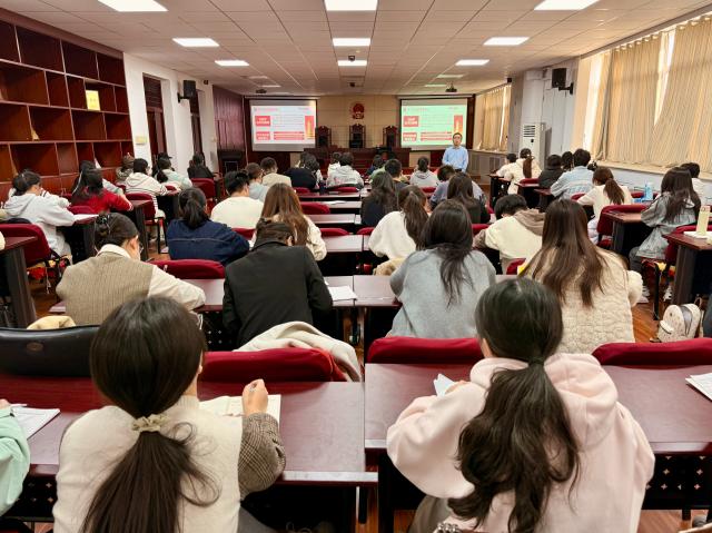授课过程中,岳增刚围绕课程主题“党的百年光辉历程”,统筹串联党发展建设的四个关键时期,结合秋收起义、三湾改编等革命斗争史实,融合社会主义建设、改革开放等不同阶段的革命探索实践,生动讲述中国共产党百年间团结带领人民共克艰难,谱写民族复兴壮丽篇章的光辉历程,让在场学员加深对党史的理解与感悟,深化听党话、跟党走的思想觉悟和行动自觉。随后,岳增刚立足青年使命与学业实践,提出殷切期望,激励在场学员传承发扬伟大革命精神,并转化为干实事,做服务的强大动力,在新时代新征程中砥砺前行,奉献更多青春力量。在场学员认真聆听并写下心得体会,纷纷表示将从党史故事中汲取奋进力量,努力提升专业能力,真正做到以党史铸魂励志,以党史赋能实干。