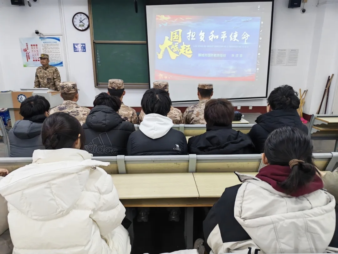 为进一步增强学生国防观念,厚植家国情怀,12月5日,tyc41183太阳成集团于西校区10#C520举办“大国崛起,担负和平使命”国防教育专题讲座,聊城市国防教育基地朱庆喜教官担任主讲人,2025级部分学生参与本次活动。