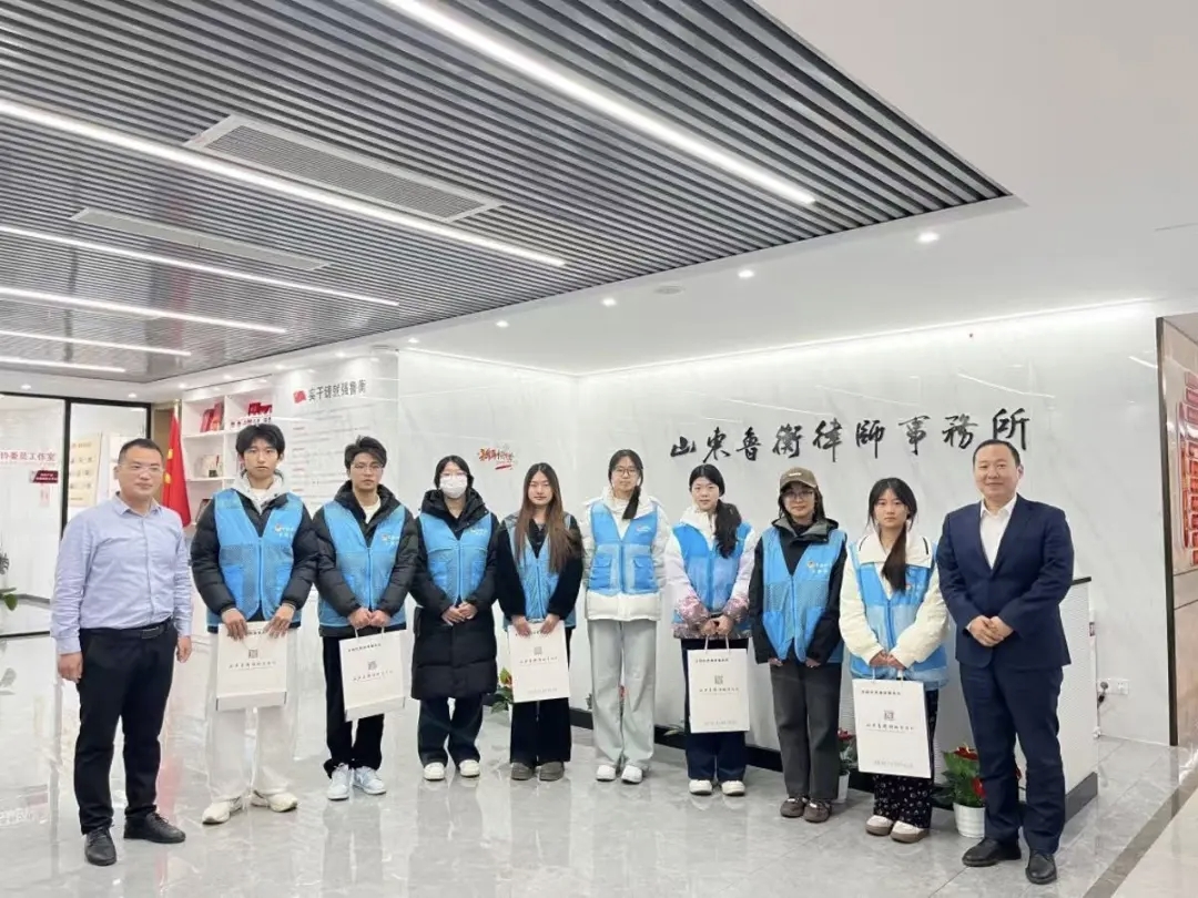 在律所工作人员的引导下,同学们首先参观山东鲁衡律师事务所的办公环境与文化展示区域。通过实地观摩与讲解,大家直观了解律师事务所的组织架构、运营模式及法律服务的基本流程,对法律职业的日常工作形成具象认知,为后续理论学习奠定实践基础。随后,事务所资深律师为同学们开展题为“宪法与公民生活”的专题讲座。律师结合行政诉讼、权利保障等实务案例,生动阐释宪法在规范国家权力、保障公民基本权利方面的具体作用与实施机制,并分享律师在维护宪法权威、推动法治实践中的角色与体会。讲座内容翔实、贴近现实,引发同学们的深入思考。 在最后的互动交流环节,同学们围绕宪法实施、法律职业发展等议题踊跃提问,律师结合自身执业经验给予细致解答。活动尾声,全体参与同学在律所内合影留念,记录下此次富有意义的实践学习经历。