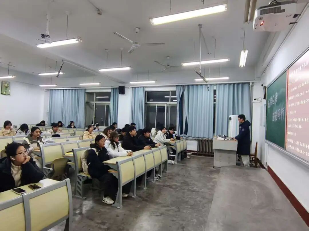 活动过程中,付明浩围绕本次考试安排、评奖评优机制、文件解读三方面展开讲解。 在考试安排环节,明确了具体的考试时间、考场分布,并对考场纪律做出严格要求;在讲解评奖评优机制时,付明浩系统梳理了各类奖学金的评选维度,着重强调“诚信考试是评奖评优的前置红线”,以真实案例警示学生作弊带来的严重后果;在文件解读板块,以《国家教育考试违规处理办法》《太阳成集团tyc41183学生违规处分管理规定》等文件为依据,深入剖析考试违规行为的认定标准、处分后果,以及其对个人学业和学位授予所产生的严重影响。 通过系统讲解,促进在场学生对考试纪律、诚信应考重要性以及违纪后果的全面认识,明确行为底线,进一步强化规则意识和法治观念。