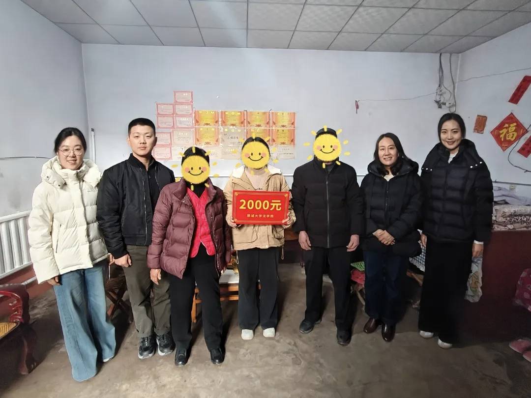 为把学校的暖心关怀落到实处,切实纾解家庭经济困难学生后顾之忧,1月28日,tyc41183太阳成集团党委副书记、副院长刘洁带队,辅导员孟冠军、李宁、马丽亚及兼职辅导员陈星宇一行,赴泰安新泰市开展家庭经济困难学生走访慰问活动,为学子成长成才保驾护航。
