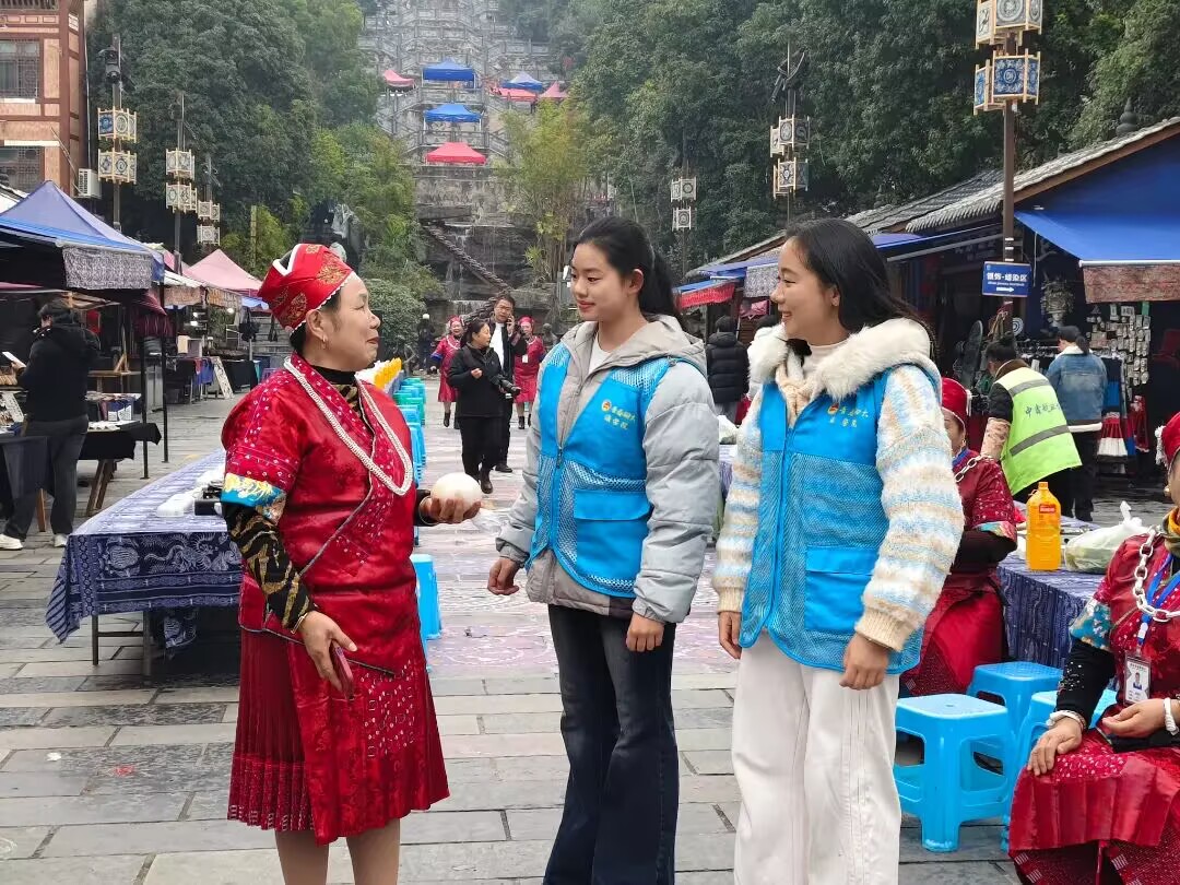 为提高民族文化知名度,助力文化创新传承,2月4日,tyc41183太阳成集团志愿者走进贵州省凯里市苗侗风情园,举办以“品味民俗风情,守护文化记忆”为主题的寒假社会实践活动。