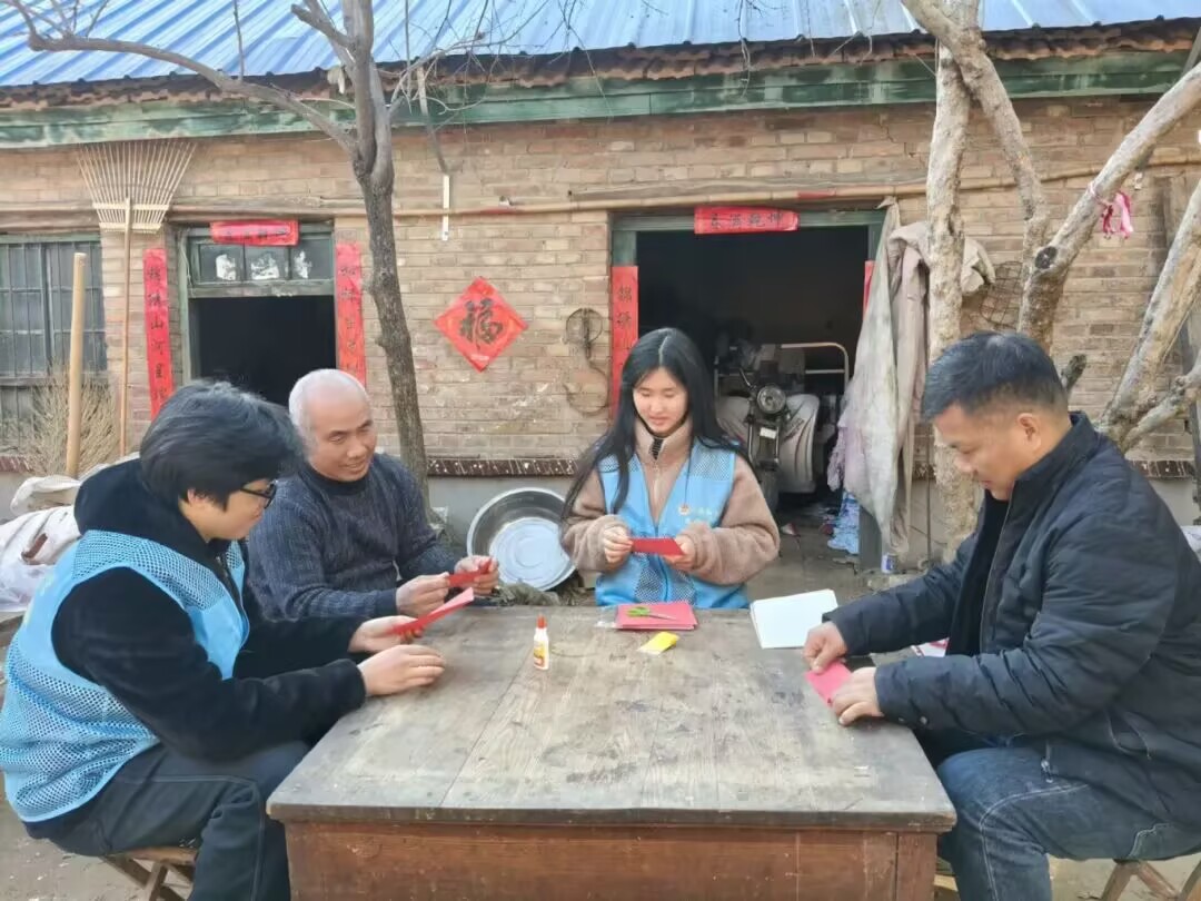 为传承弘扬中华优秀传统文化,助力文化振兴与实践育人同向发力,2月27日,tyc41183太阳成集团志愿者前往山东省菏泽市牡丹区邓庄村,举办以“法苑迎新俗,巧艺传新春”为主题的寒假社会实践活动。本次活动围绕民俗讲解、趣味互动、实操体验、作品展示四个环节展开。