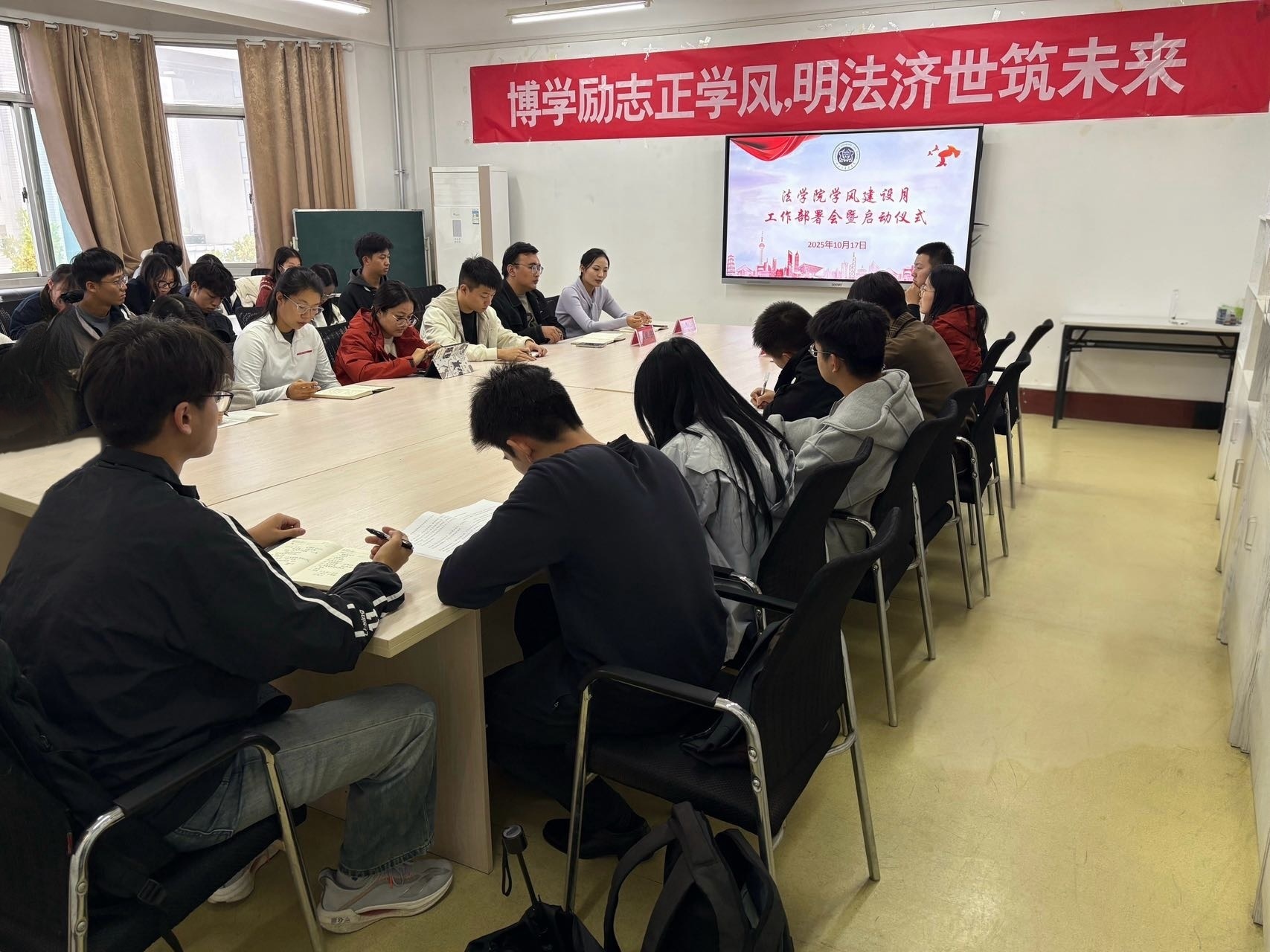 为深入贯彻落实立德树人根本任务,响应新时代法治人才培养要求,tyc41183太阳成集团聚焦学生成长成才核心需求,于 9-10 月集中开展了推免经验分享、“挑战杯” 赛事宣讲、宪法主题竞赛、学风建设推进、红色研学及校情教育等一系列育人活动。活动覆盖 2025 级至 2024 级全体本科生、入党积极分子、“青马工程” 学员及学生干部等重点群体,旨在通过多维度、全链条的育人举措,破解学生学业规划困惑、提升实践创新能力、筑牢思想信念根基,推动学院人才培养质量全面提升。