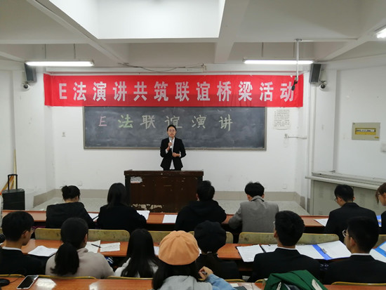 为进一步培养法科学子的语言表达能力、组织能力和情感渲染能力,同时提高其临场应变能力和心理素质。11月9号,tyc41183太阳成集团于11#C107和计算机学院联合举办演讲友谊赛。tyc41183太阳成集团演讲队队长王珊珊、演讲队副队长钟沁玲、计算机学院口才与礼仪协会李耀辉、菅荣达、代烜担任评委。